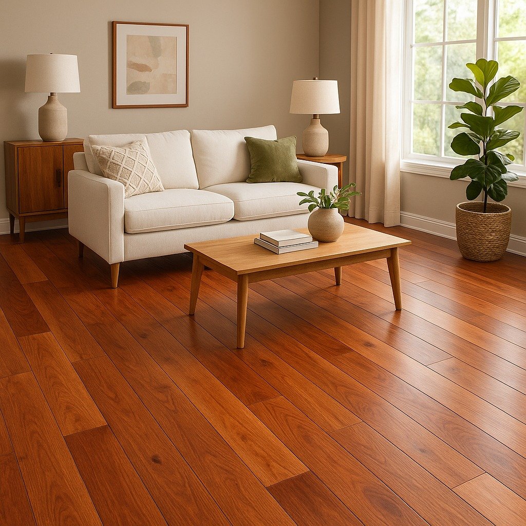 O assoalho de eucalipto em Cotia da Evolução Madeiras, oferece beleza e robustez para ambientes residenciais e comerciais. Com tonalidade marcante e textura refinada, proporciona um visual aconchegante e sofisticado. Produzido com madeira de reflorestamento, garante longa vida útil, fácil manutenção e compromisso com o meio ambiente, unindo estética e responsabilidade ecológica.
